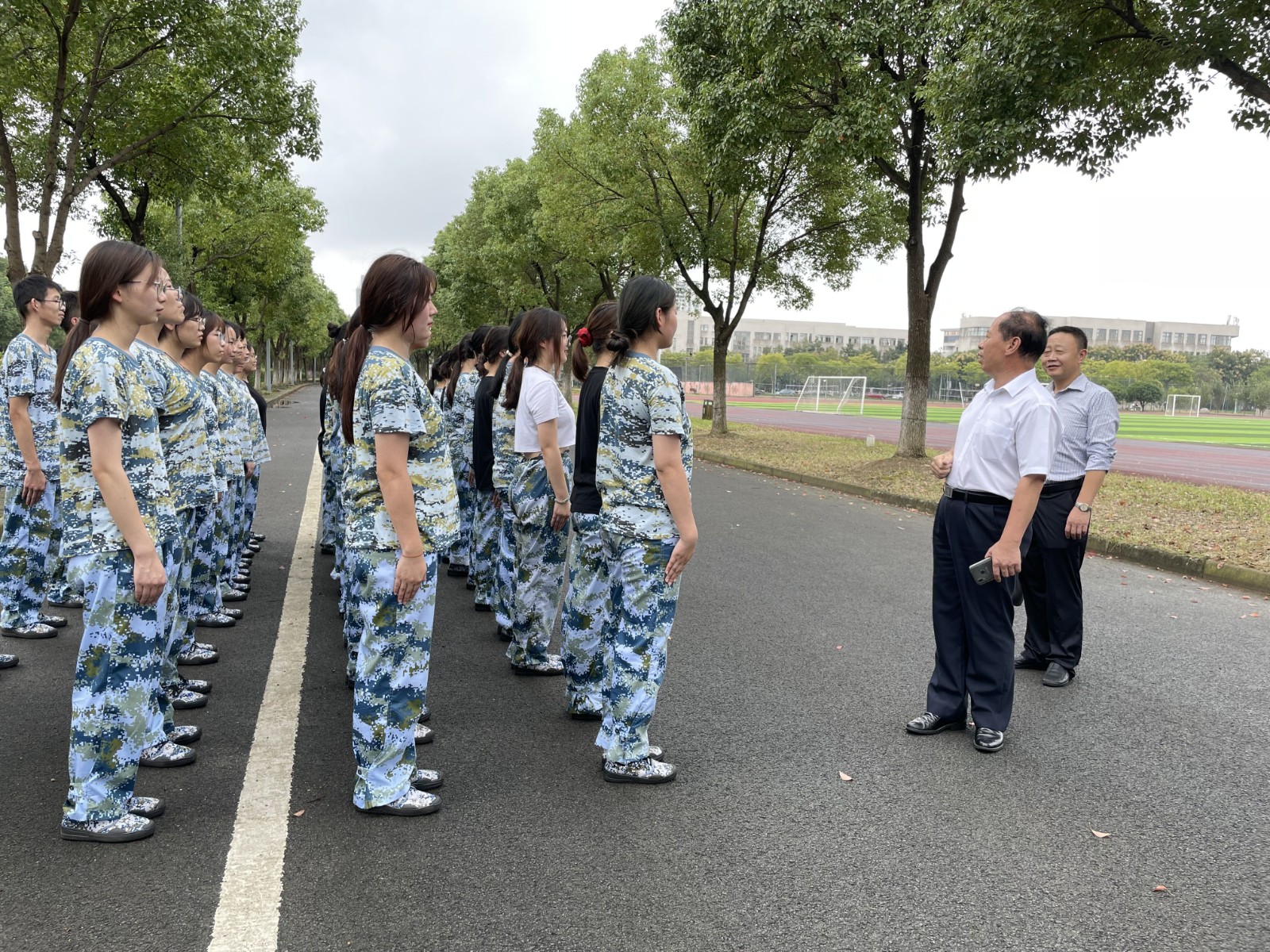 党委常务副书记杨福章多次到现场看望助训教官和参训新生。他表示,集体观念及规矩意识教育有助于帮助新生养成集体观念和规矩纪律意识,培养良好学习生活习惯,有利于新生适应大学生活,完成思想与行为的同步转型,为今后大学学习生活开个好局。他强调,助训过程中要做到“三不影响”“三不惩罚”,对于新生、新生班助、助训教官,不影响学习,不影响身体,不影响心情;对于新生,要不晒太阳、不淋雨、不逼迫学生。