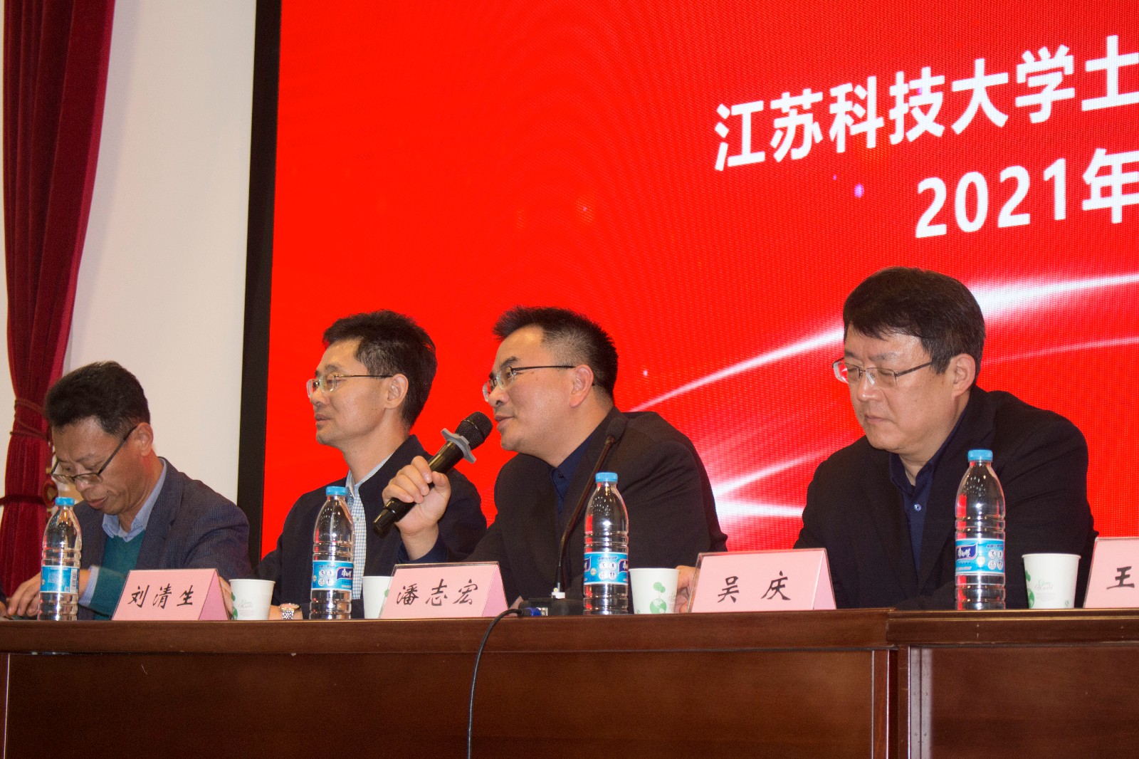 为了引导土建学子明了读大学的价值和意义,勤勉刻苦、开拓进取,认真学习专业知识,培养创新精神和自主学习能力,积极投身行业领域,践行使命担当。帮助2021级新生了解土木工程与建筑学院,进一步明确学科特色和专业优势,树立发展信心,坚定奋斗目标,会议伊始,由土建学院院长潘志宏老师介绍学院的基本情况和发展现状。潘院长以“我们从哪里来”,“我们怎么样”,以及“我们要到哪里去”这三问贯穿,系统性阐述了学院的历史沿革。潘院长强调土建学院土木工程专业是江苏省内唯一同时服务于土木、船舶和海洋行业,与涉船涉海学科深度融合的一级学科,是特色鲜明、服务于地方社会经济发展、省内外知名的学科专业。潘院长还列举了包括微生物矿化关键技术开发及其应用,新型工业化结构体系及防灾减灾关键技术等多项学科标志性成果,为新生们树立了强烈的专业自信,发展自信。在发言的最后,潘院长对同学们寄予了殷切的希望,勉励新同学们要秉持“厚德砺能,筑基建业”院训,脚踏实地,开拓创新,求真知、做学问,努力成为一名优秀的江科大学子!