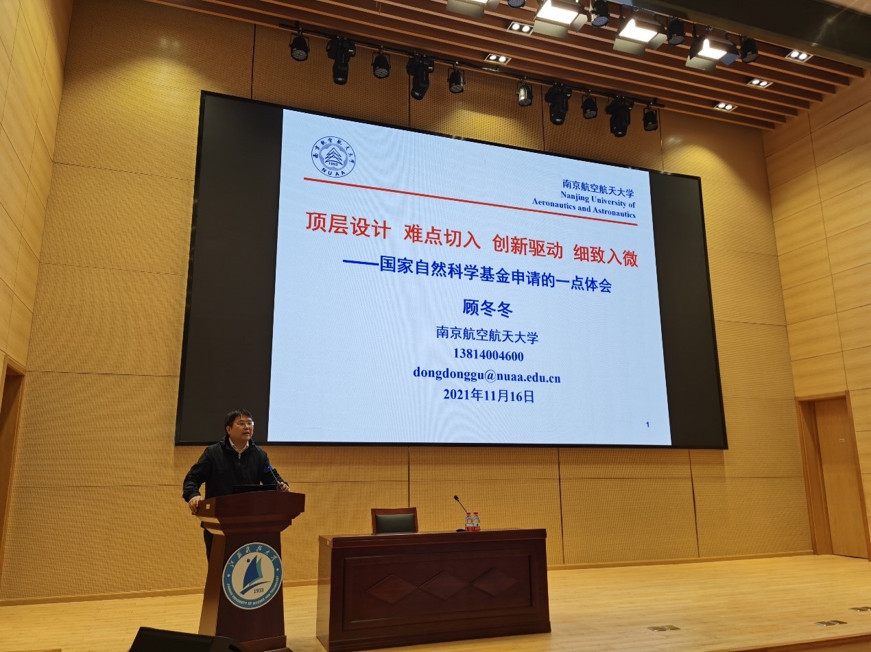 为进一步推动新浦京官网2022年度国家自然科学基金的申报工作,提升申报项目质量,2021年11月16日下午,科技处邀请南京航空航天大学顾冬冬教授就国家自然科学基金申报作专题辅导报告。科技处处长王志东主持,各学院国家自科基金工作负责人及申报教师200余人聆听了此次报告。