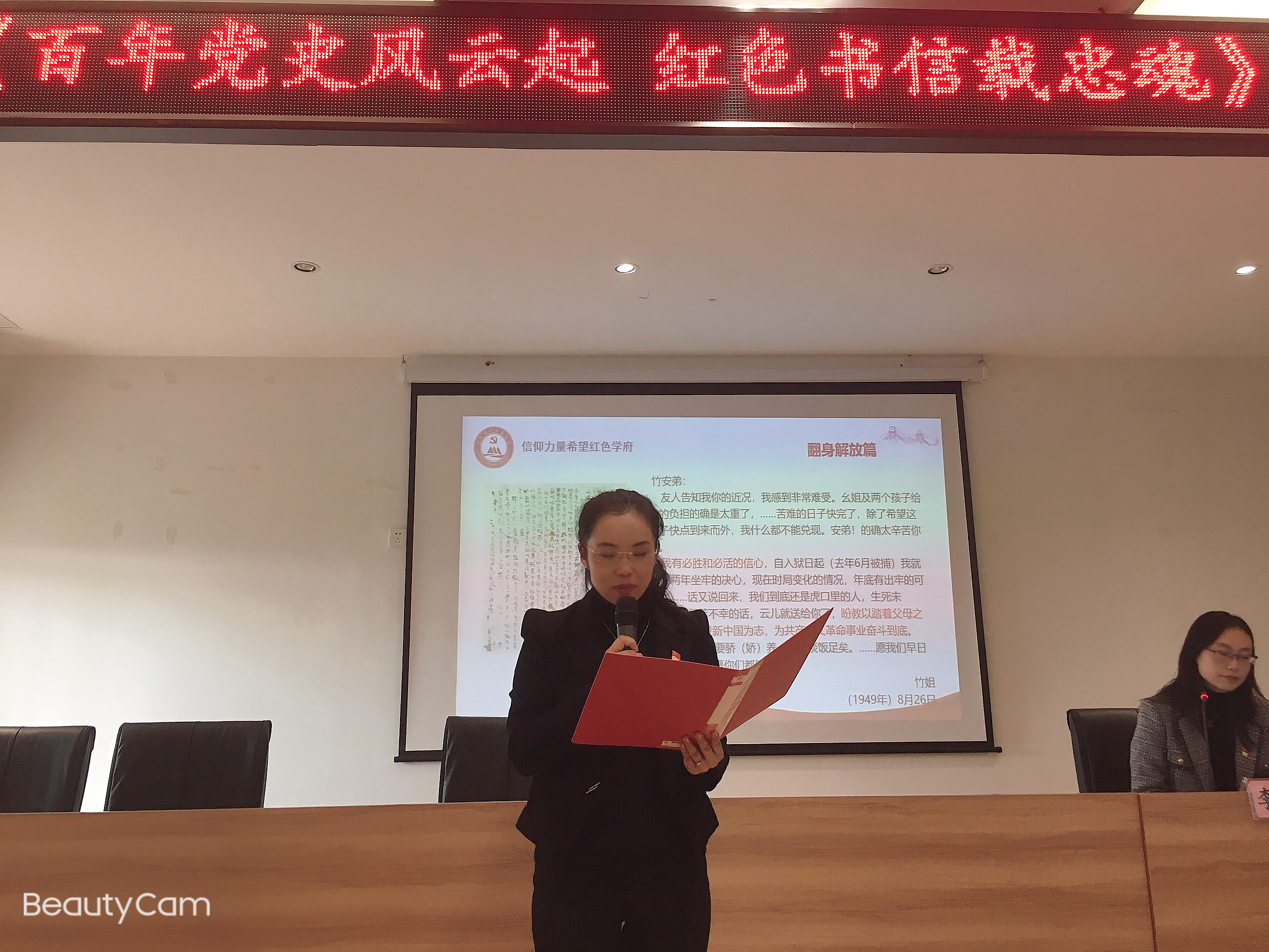 李秋阳老师带领全体党员以书信的视角再次梳理了党史的脉络。展示给大家的不仅仅是中国共产党的成长史、奋斗史,更是我党从开天辟地、峥嵘岁月直至翻身解放、走向复兴的伟大历程。党课以朗诵讲解和音乐视频相结合的方式,从不同人物、不同视角品味了一封封红色家书、红色书信,感受平实质朴的情感,聆听令人动容的革命先辈故事。