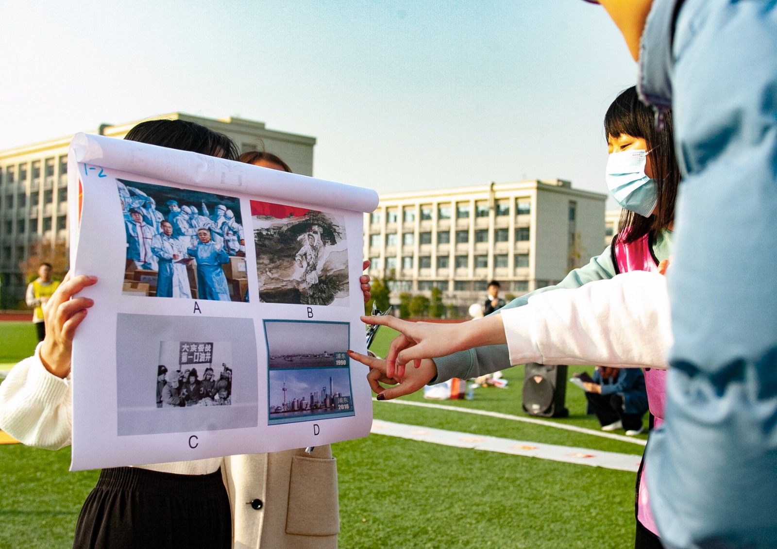 活动中,师生联合组成“全心全意”“实事求是”“艰苦奋斗”“与时俱进”四个小队,通过掷骰子、答问题、做游戏、走方格的形式,团结合作,你追我赶,历经“新民主主义革命征程”“社会主义革命和建设时期征程”“改革开放征程”以及“新时代复兴征程”四个阶段,最终到达游戏的终点。经过激烈的角逐,“与时俱进”队获得了冠军。