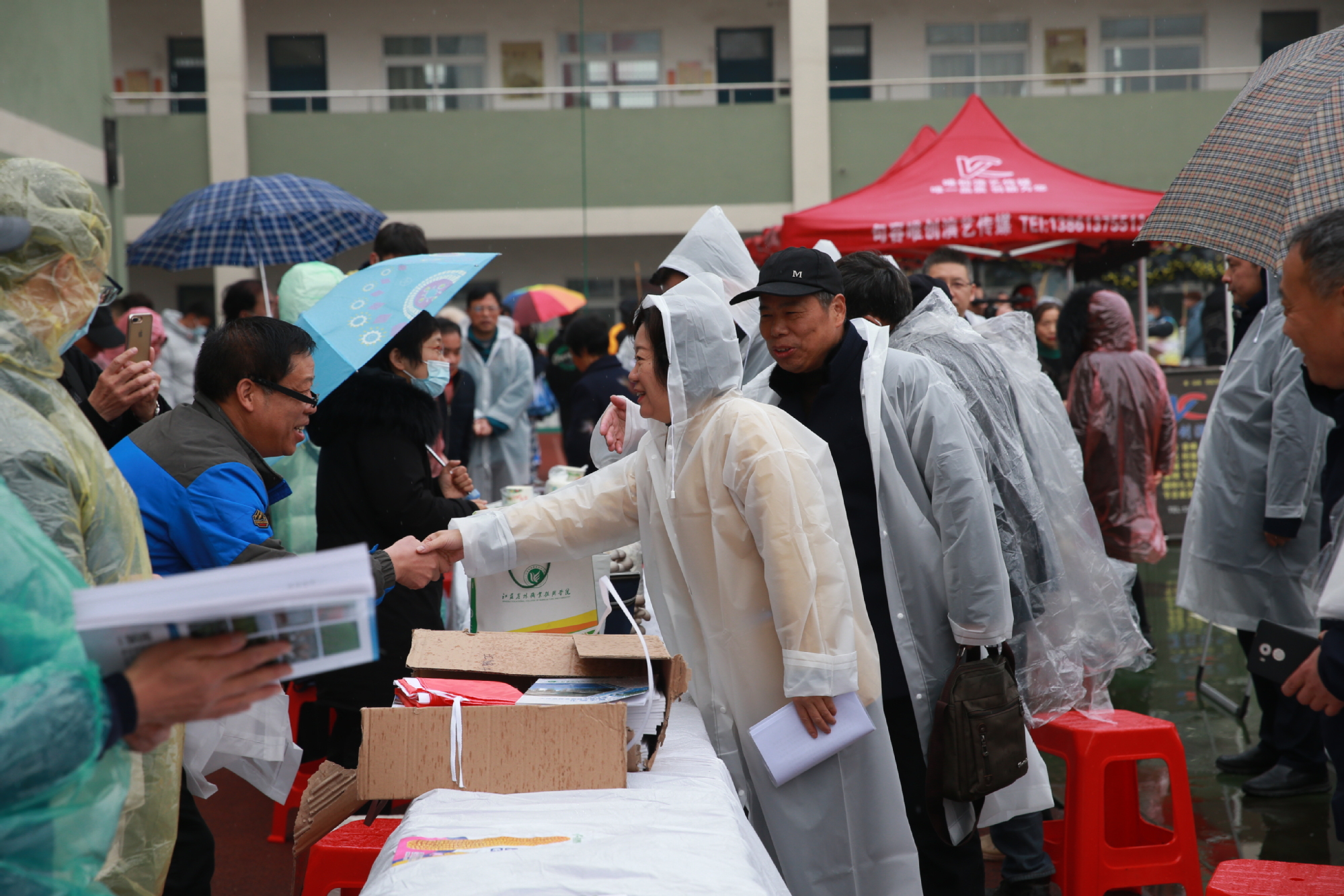 新浦京官网参加“老区行”活动的老师不顾下雨和天气寒冷,热情服务老区人民,受到了老区人民的热烈欢迎和高度赞扬。