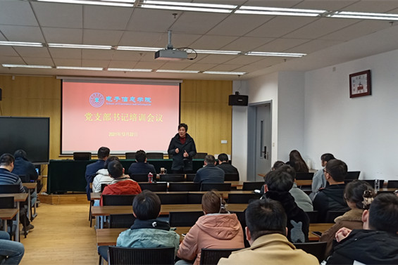 12月22日,电子信息学院在学院学术报告厅召开了2021年度党支部书记述职会议,学院党委领导班子成员、各支部书记、副书记、委员等50余人参加了会议,会议由学院党委副书记何长涛主持。