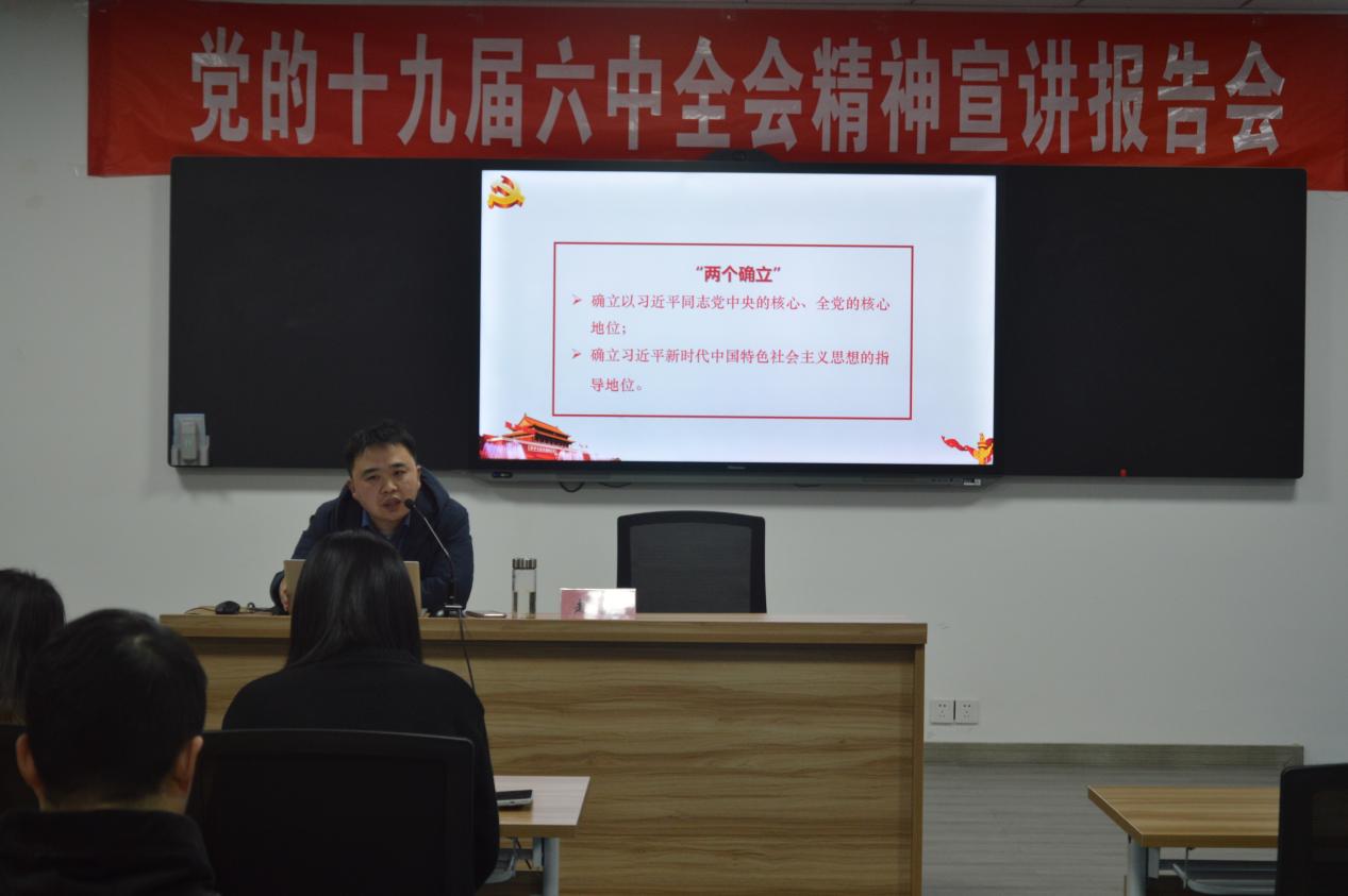 报告会上,姚可欣对十九届六中全会精神及党百年奋斗征程的四个时期创造的伟大成就进行了解读;郝宝平从坚持党的全面领导、全面从严治党、政治建设、经济建设、生态文明建设、文化建设等13个领域方面详细介绍了十八大以来取得的重大成就,并就如何实现共同富裕、做好疫情防控、落实立德树人等亮点作了解读;赵勇老师从理论、历史、现实三个维度,深刻阐释了“两个确立”的背景、意义。