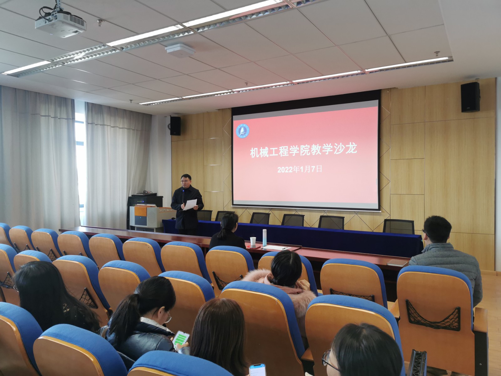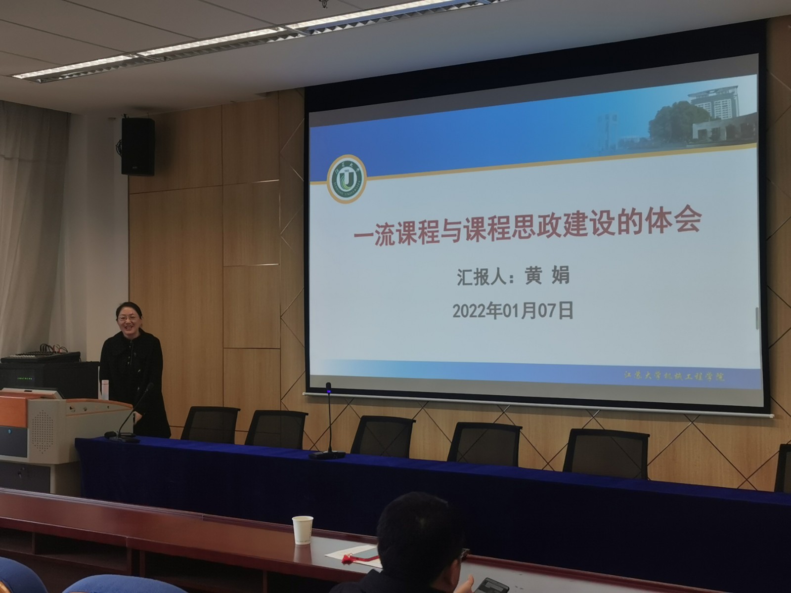 1月7日下午,机械工程学院在学术报告厅举办以“一流课程与课程思政建设”为主题的教学沙龙活动。国家一流课程负责人、江苏大学教学名师黄娟教授应邀做主题报告,院长周宏根、副院长钟伟出席活动。