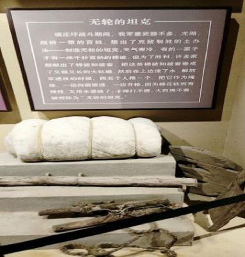 在参观碾庄战役纪念馆时,卢子健同学给大家展示了《无轮的坦克》图片,看到这张图片时,同学们深刻理解了当时历史书上对于淮海战役的评价:小车推出来的战役。正是老百姓的无条件支持,才使得中国共产党的军队能够抵挡敌人的进攻,虽然这场战役损失惨重,但也正因为共产党的正确领导与先烈们的顽强抵抗,才赢下了淮海战役中的转折点,从而奠定了百万雄师过大江的壮丽,粉碎了国名党歼灭共产党的阴谋。