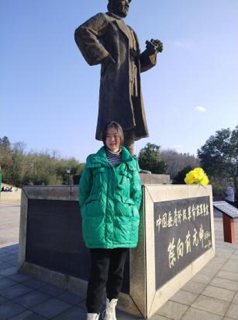徐向前元帅是我国著名的无产阶级革命家军事家,是中华人民共和国的缔造者之一。他出生于山西五台县的一个贫困家庭,后考入黄埔军校,参加北伐,加入中国共产党。1929年,他受命被派到鄂东北工作,担负起开辟和发展鄂豫皖根据地的重任。在反“围剿”的斗争中,提出了红军游击战术的七条原则。 来自2122119032班的陈雅婷同学通过参观徐向前元帅的纪念碑,深刻理解了老一辈革命家艰苦朴素、奋斗坚持、不怕苦不怕累的伟大革命精神。见贤思齐,红星依旧,陈雅婷同学与实践团成员互勉,要学习徐向前革命精神,书写中华民族新篇章!