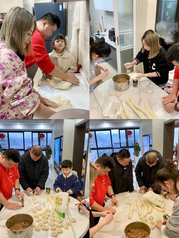 此外还有来自重庆的深蓝学子分享的苕皮、上海的志愿者与小朋友们带来的红烧肉、生煎、小笼包等传统美食。还有家长与他们一起制作年夜饭、包饺子的环节,“人间风火味,最抚凡人心”,家人们欢聚一堂,有归家的孩子,也有守候的家长。从夜幕降临到月上柳梢,在“围炉夜话”里,互诉累积日久的思念,忆往昔,道今朝,敬未来。