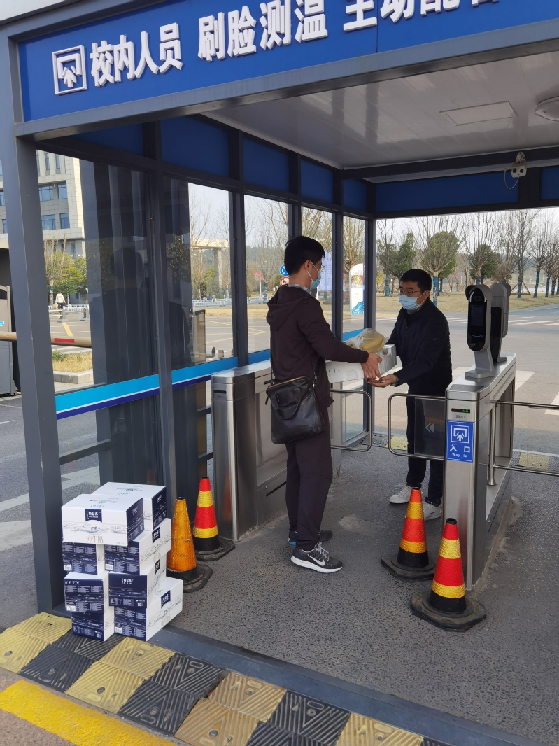 3月12日下午,学院党政办、院工会负责同志赶往长山校区北大门入口向留校人员表示了亲切慰问,详细了解了他们的生活需求,并代表学院赠送了牛奶、水果等物资。留校人员表示将勇担责任,充分做好留校防疫工作,不负使命,坚决打赢防疫阻击战。