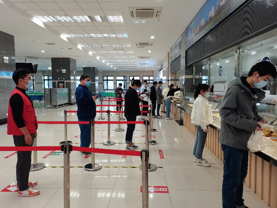 3月初至今,粮食学院志愿者坚守岗位,在东食堂二楼开展购餐引导工作。督促学生不扎堆、不聚集,排队时保持2米间距,佩戴口罩,有序购餐。