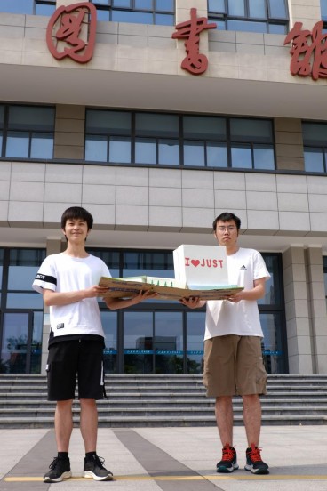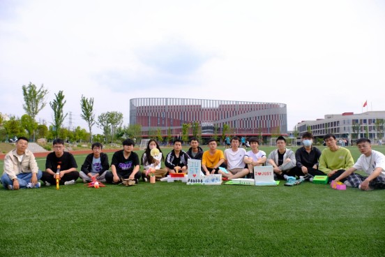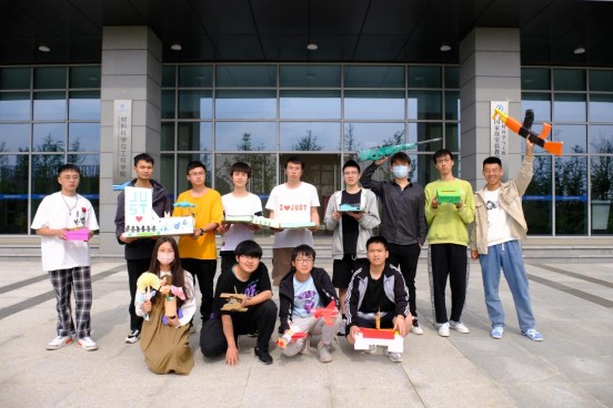 5月15日,部分团队逐步完善好作品相约于美丽的江科大校园进行打卡留念。20级高分子专业的杜昊、龚晓良、袁朝义等同学利用废旧纸箱,泡沫板打造出一个迷你版“文理大楼”通过彩绘并贴上“I LOVE JUST”的标签,表达对学校最诚挚的热爱;潘佳乐和乔湛钊两位同学带着完善后的迷你版图书馆到校图书馆打卡,希望同学们能在江科大探索真知,展现青春活力,享受大学生活;吴齐用折纸和泡沫制作出“JUST号”舰船,他表示“JUST号”不仅仅是一艘船,更是承载着自己四年的梦,希望它能带着自己驶向深蓝;而张康、宗剑伟、董舒则带着各自制作的飞机畅游在校园进行打卡。随后,全体成员分别在文体中心、图书馆、笃学楼、材料学院等地合影留念。